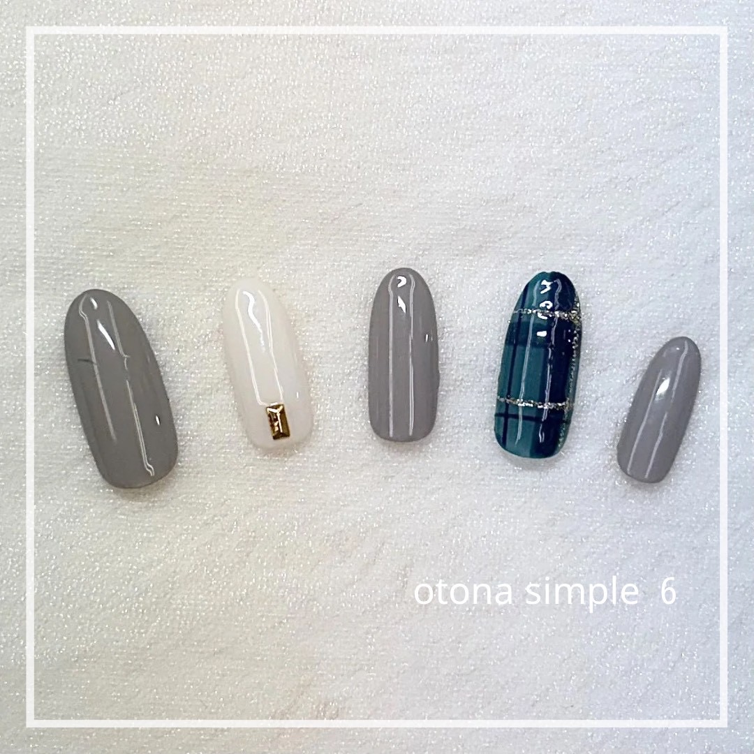 9:大人ワンホンチェックネイル.*・゚