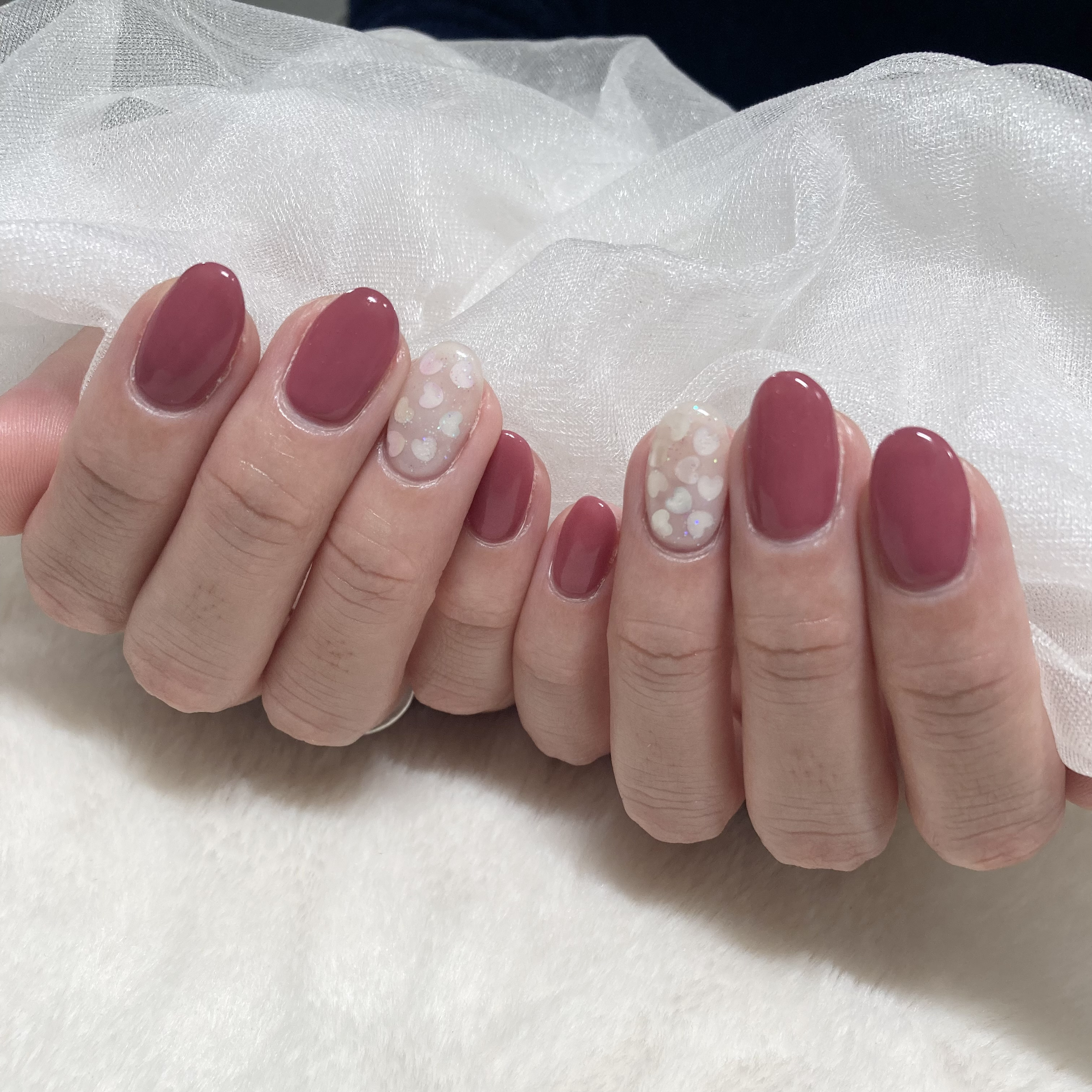 ローズピンクに一本ハートホロキラキラ🤩❤️